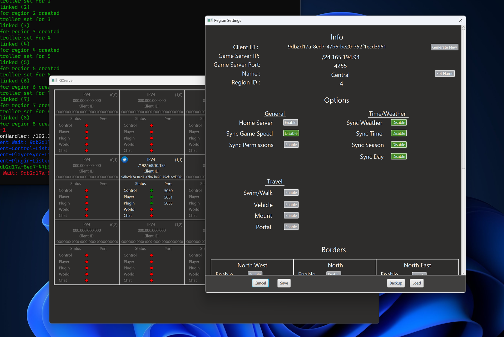 When the server is running, you can open this homepage and check port 4255 and 4254: https://www.yougetsignal.com/tools/open-ports/