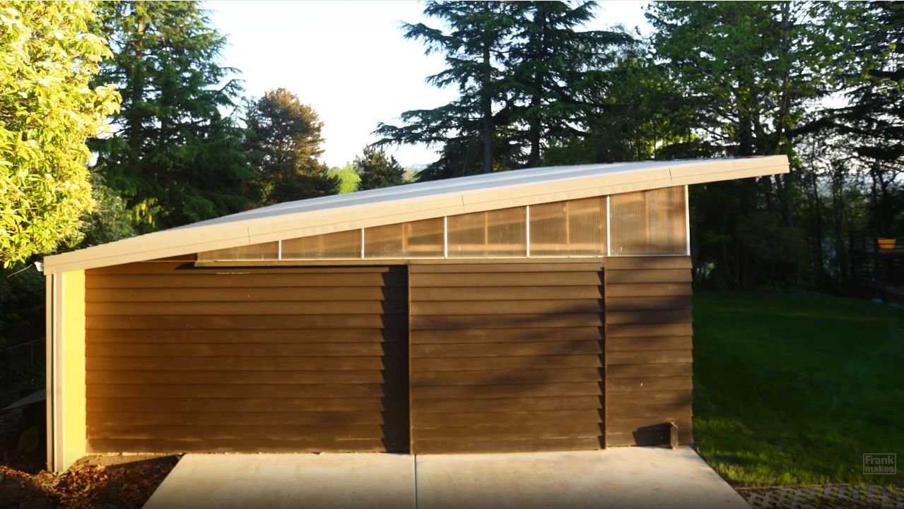 The design is based on a real building, Frank Howarth's giant shed-like woodshop (watch him build it here