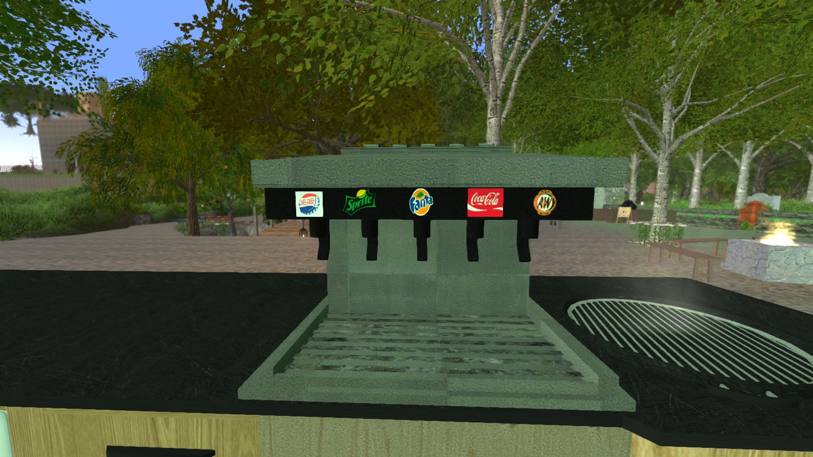 Just a normal soda machine like at a restaurant. The logos are posters and do not come in the blueprint