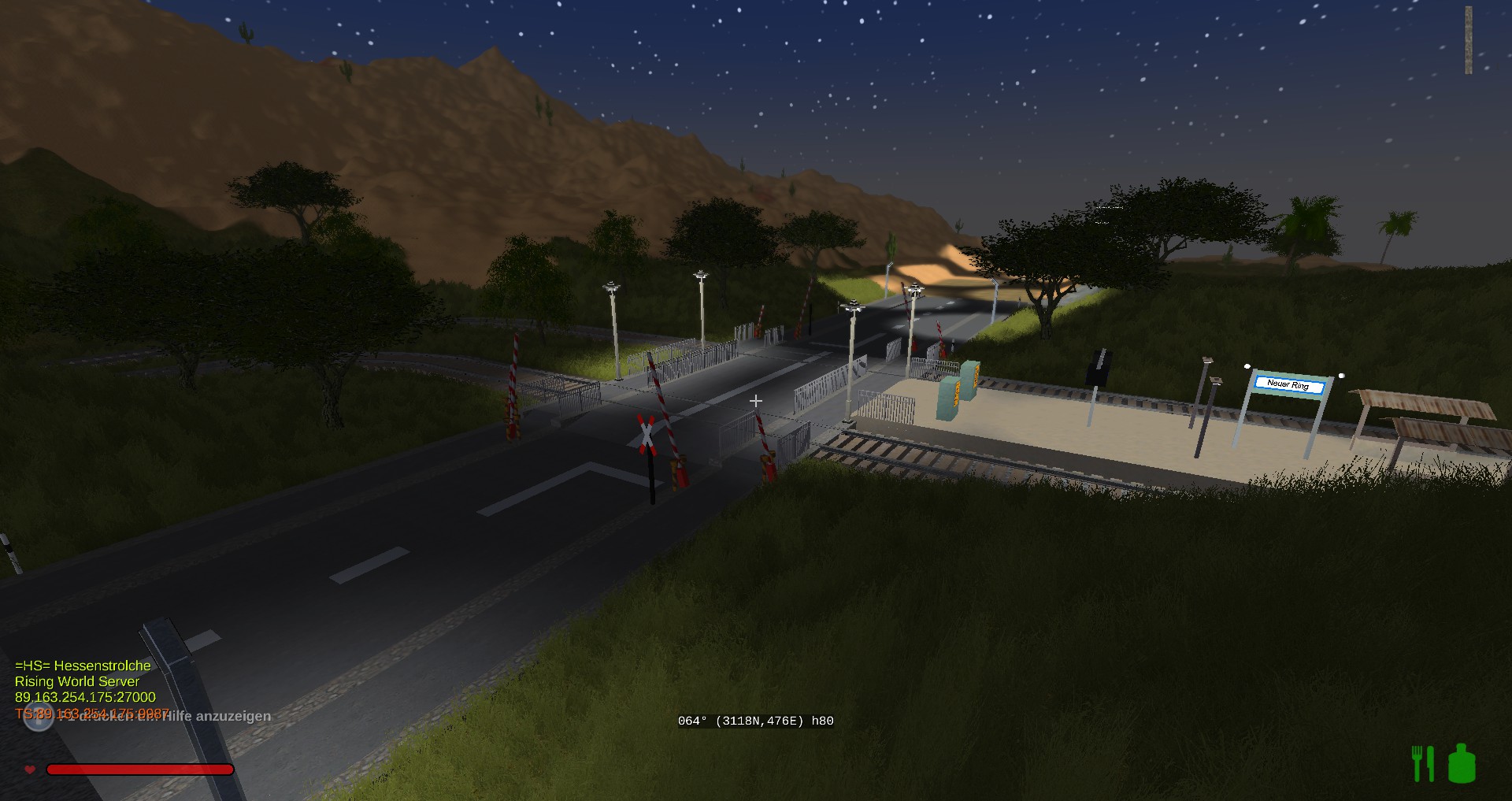 mehrere Kilometer Gleise wurden verlegt. Desweiteren haben wir einige neue Brücken und Bahnübergänge gebaut.Neuer Bahnhof mit Bahnübergang: