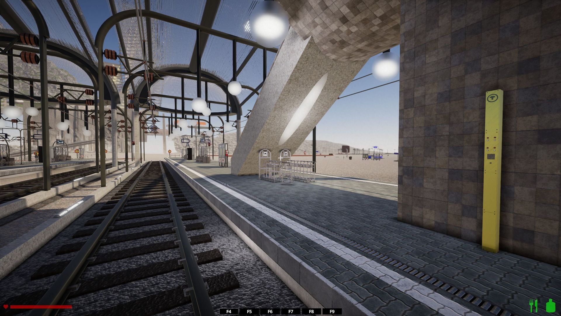 Ansicht Bahnsteig, Wartebereich, Automaten, Raucherbereicht und Mülleimer.