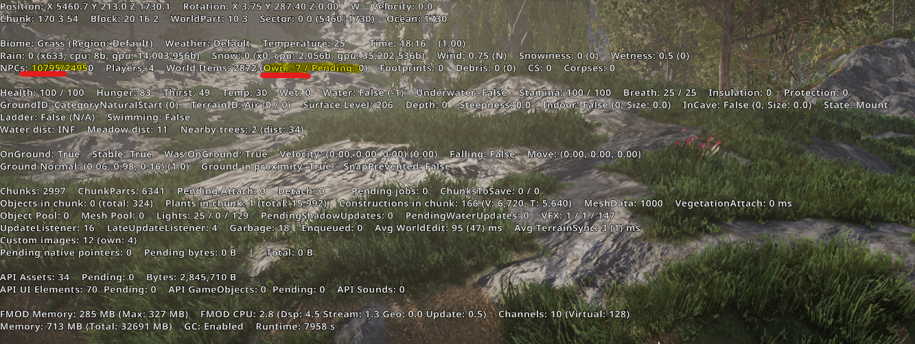 In image uploaded, the number of npc in proximity grow to over 10k after a player move on mount near me. After relog it show only 1 before player come close.