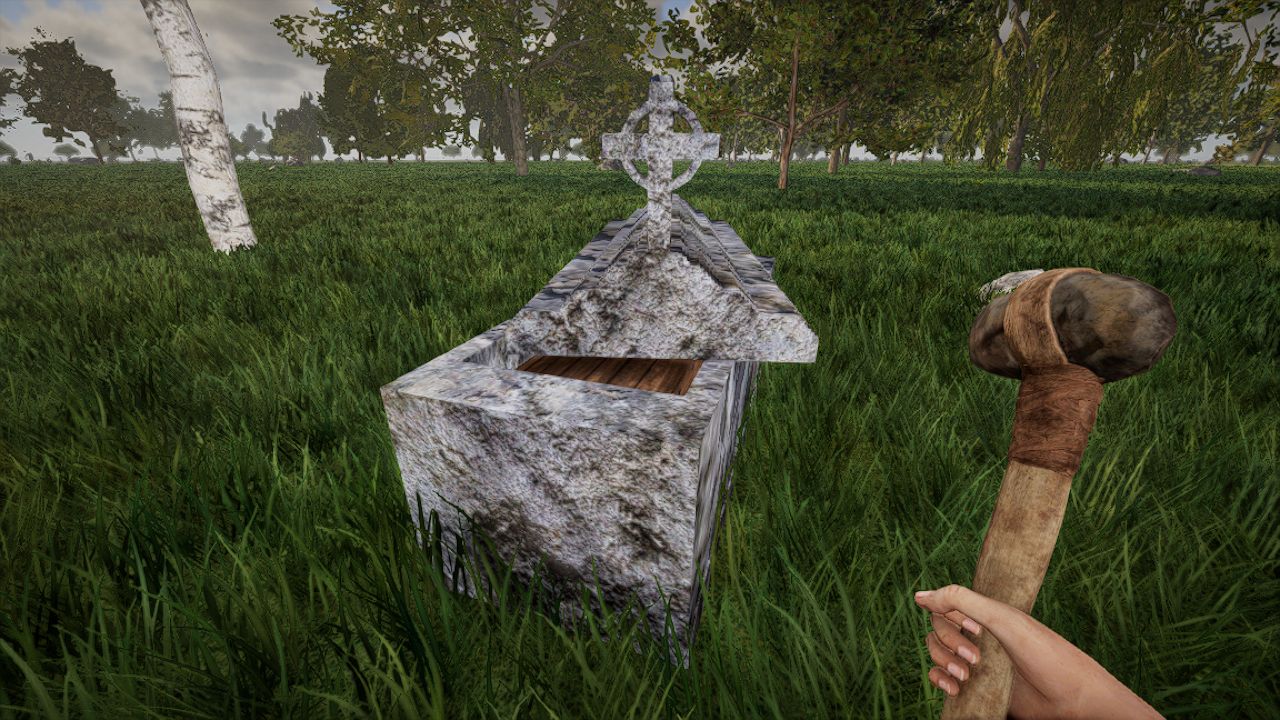 . Told ya I had to get creative) Once you're looking in an area that registers, you'll get the Open icon. On it's own, the blueprint doesn't spawn loot, but if you want a nifty place to store valuables in single player or playing with friends, or if you're the admin on a server, you can manually stash loot in the grave. Hope you enjoy the blueprint! *Edit: I just realized the screenshots don't show the open dialogue. Shouldn't be a biggie though. if you look between the rocks you should see the Coffin easily enough -