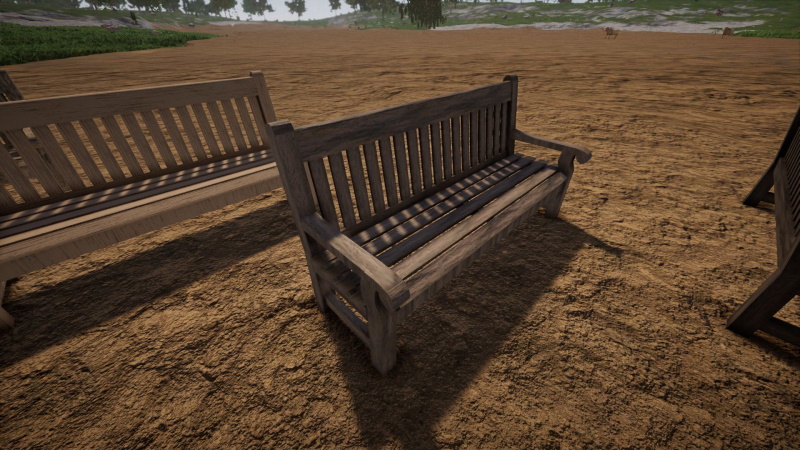 I gathered my banks to provide them for you. For one we have a very simple model in two colors (the three benches on the left side of the picture), one of them bright colored, the other two dark. One of the dark models is not functional, but all other benches are.
