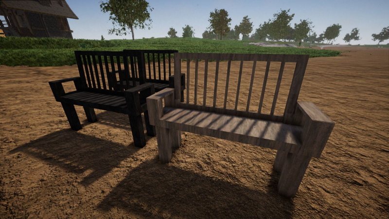 Ich habe mal meine Bänke zusammengesucht, um sie Euch hier zur Verfügung zu stellen. Einmal ein sehr einfaches Modell (die drei Bänke ganz links im Bild), einmal in hell, zweimal in dunkel. Eines der dunklen Modelle ist nicht funktional, alle anderen Bänke sind funktional, und natürlich gibt es die dunkle einfache Bank auch in funktional.