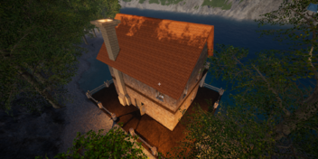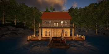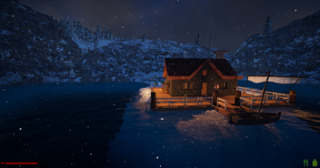 I built this little house in the Arctic, with a fireplace for warmth and standard furniture.