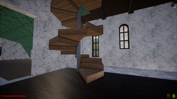 I am building a spiral staircase in my palace. I put a central pole (cylinder) and then a triangular slope elements, each next rotated by 45 degrees. It's not finished yet, I am planning to make it more retro looking.