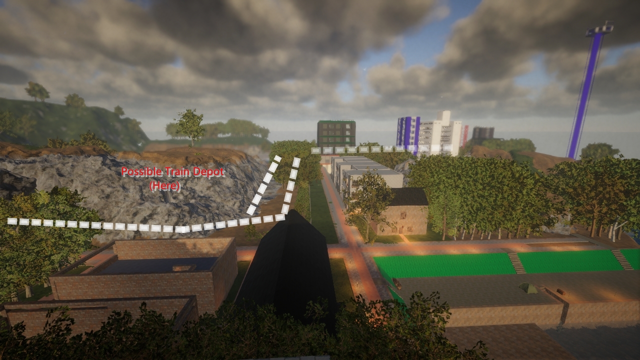 I don't know how much people care about this, I'm however attempting to loosely plan out my railway lines. I don't know how well they'll find into my cramped main city (tons of terra-forming), I however have a path for it to take. White lines is the rail route, the black building with green trim is the train station, and it leads out 2 ways. I'm hoping I can inspire from both 'Osaka Loop' & 'Sapporo' inner & outer loop on the main island. Similar can be done with the Savannah biome I colonized. Both are the same size, take up the whole map resolution, and trains are indeed possible on both islands. Sure, I can horse, and I have been using my horse. I've been building roads, and I may end up building more roads if the December 2024 update nudges me to do so. I need to see what Red51 provides us.