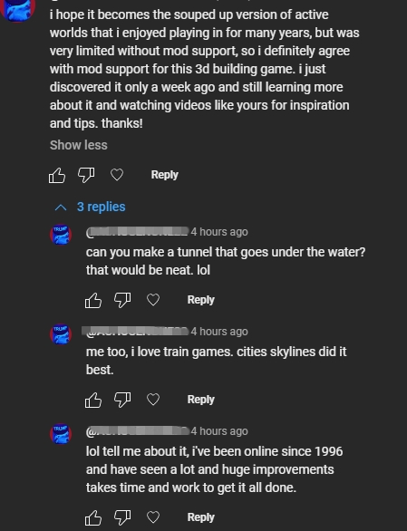 One thing that has me happy, and with renewed hope/pride of Rising World is receiving positive YouTube comments relating to Rising World. I'm still giving Rising World a chance, the trolls and Anti's have to be dealt with. You're going to kill Rising World by siding with them time and time again. They thrive on fake pity points (constantly playing fake victim).