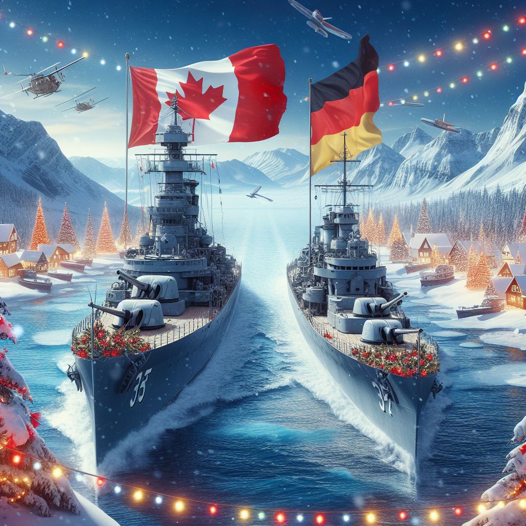 Some more attempted festive AI art images containing Canadian and German warships from WW2 era, with a touch of Christmas vibes. I believe my shipgirl prompts provided better results.