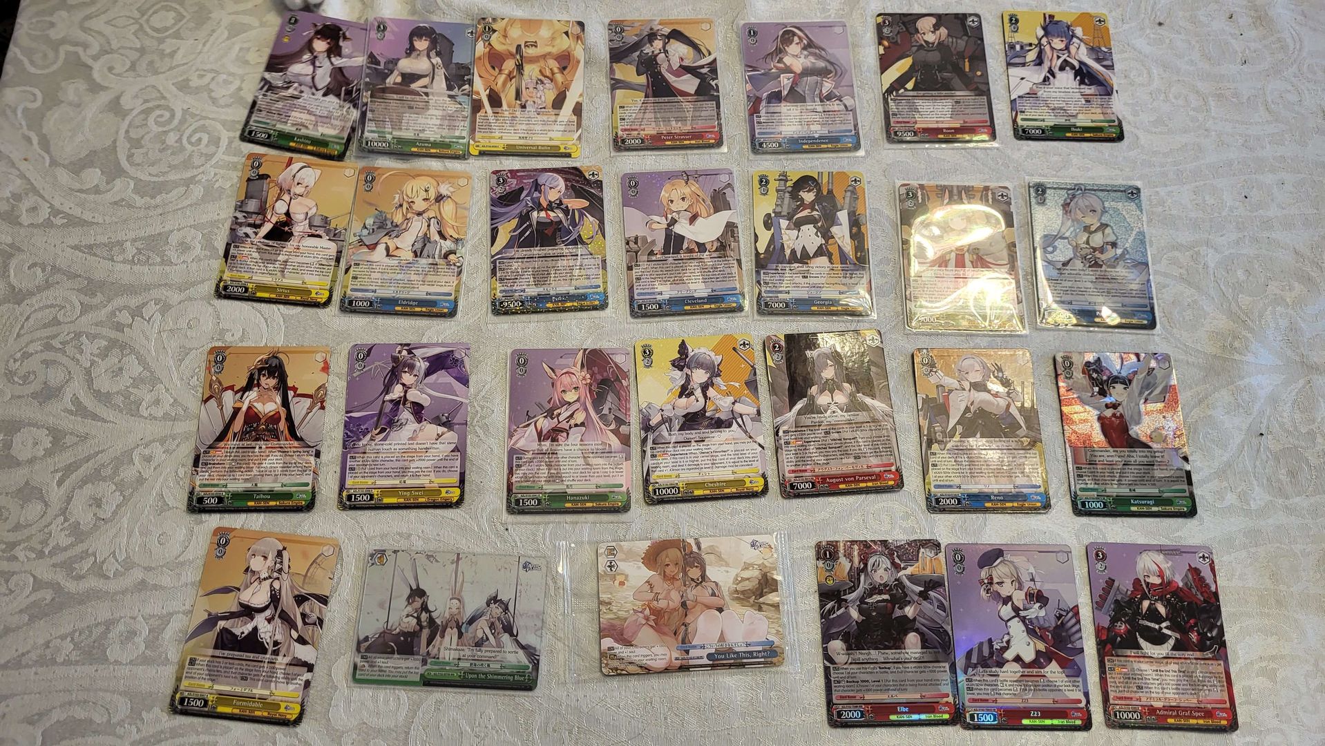 - My Azur Lane gifts. Boosters in blue, trial deck in red. Yes, it's themed to Ironblood, meaning German WW2 shipgirls.