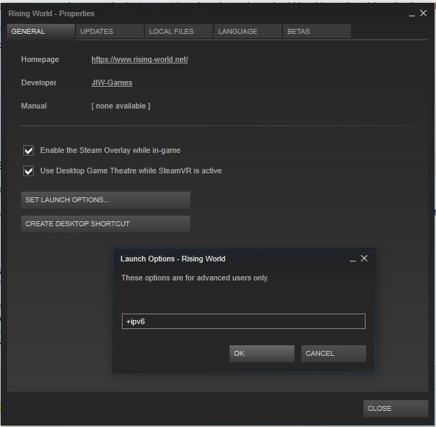1. adjust the start parameters of my game to +ipv6 (screenshot 1)