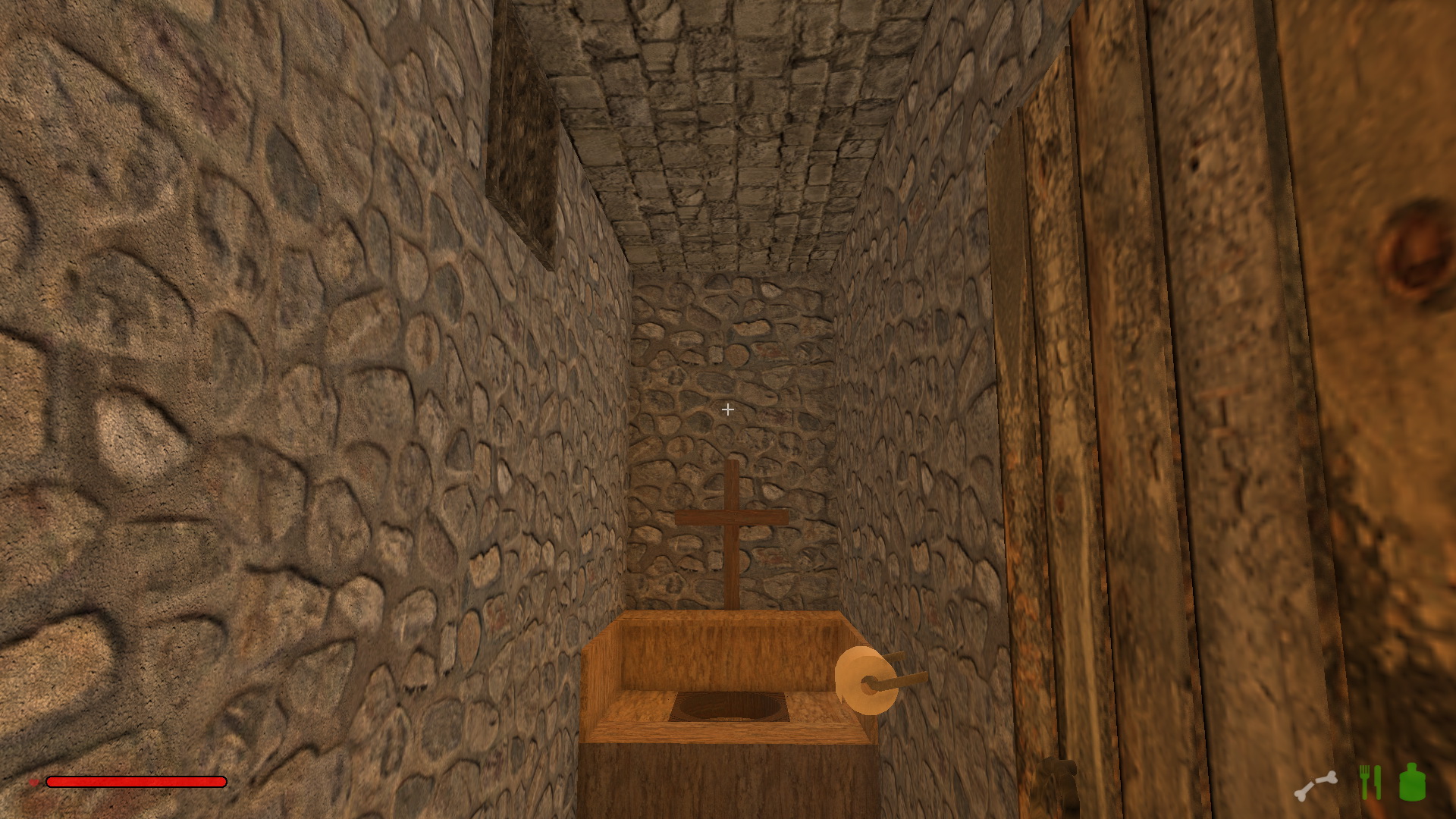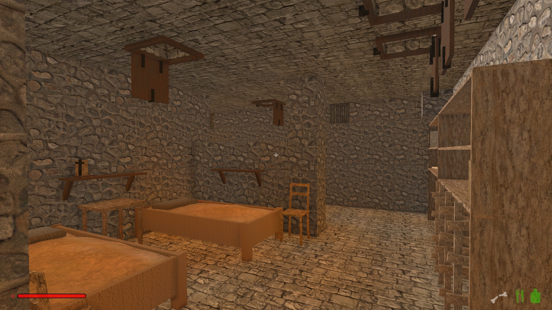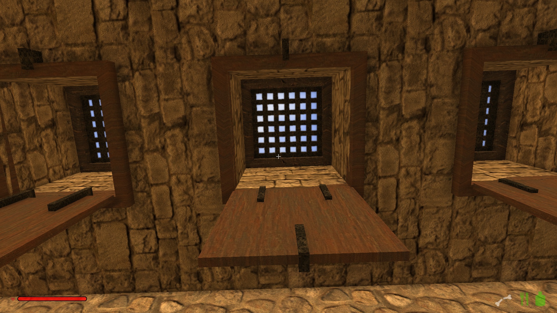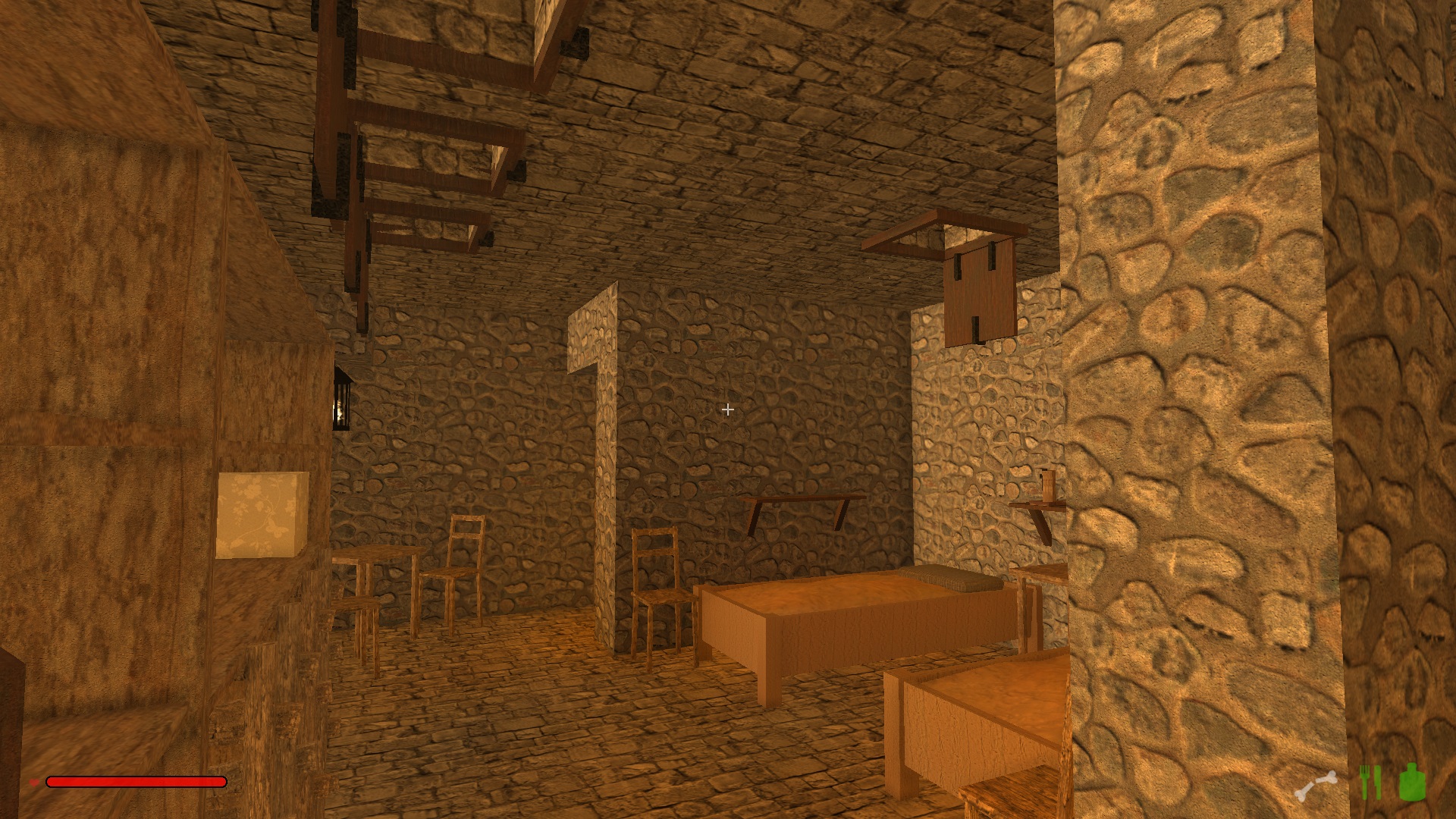 Stattdessen hab ich bissl an dem Mannschaftsquartier rumgebastelt, was einen direkten Zugang zum Verlies hat, aber auch einen zum Turm, quasi von zwei Seiten aus begehbar. Als Kind fand ich die Löcher im Boden bei Burgen immer faszinierend, von wo man von oben nach unten gucken konnte. Damals wusste ich noch nicht, dass die zur Belüftung da waren, weil man unter der Erde keine Fenster hast, aber die wollte ich auch unbedingt mit einbauen. An den Außenmauern gibt es Belüftungs-Lichtschächte und innen halt kleine eckige Luken, die bei schlechten Wetter aber auch verschlossen werden konnten, damit die armen Soldaten nicht nass wurden über Nacht.