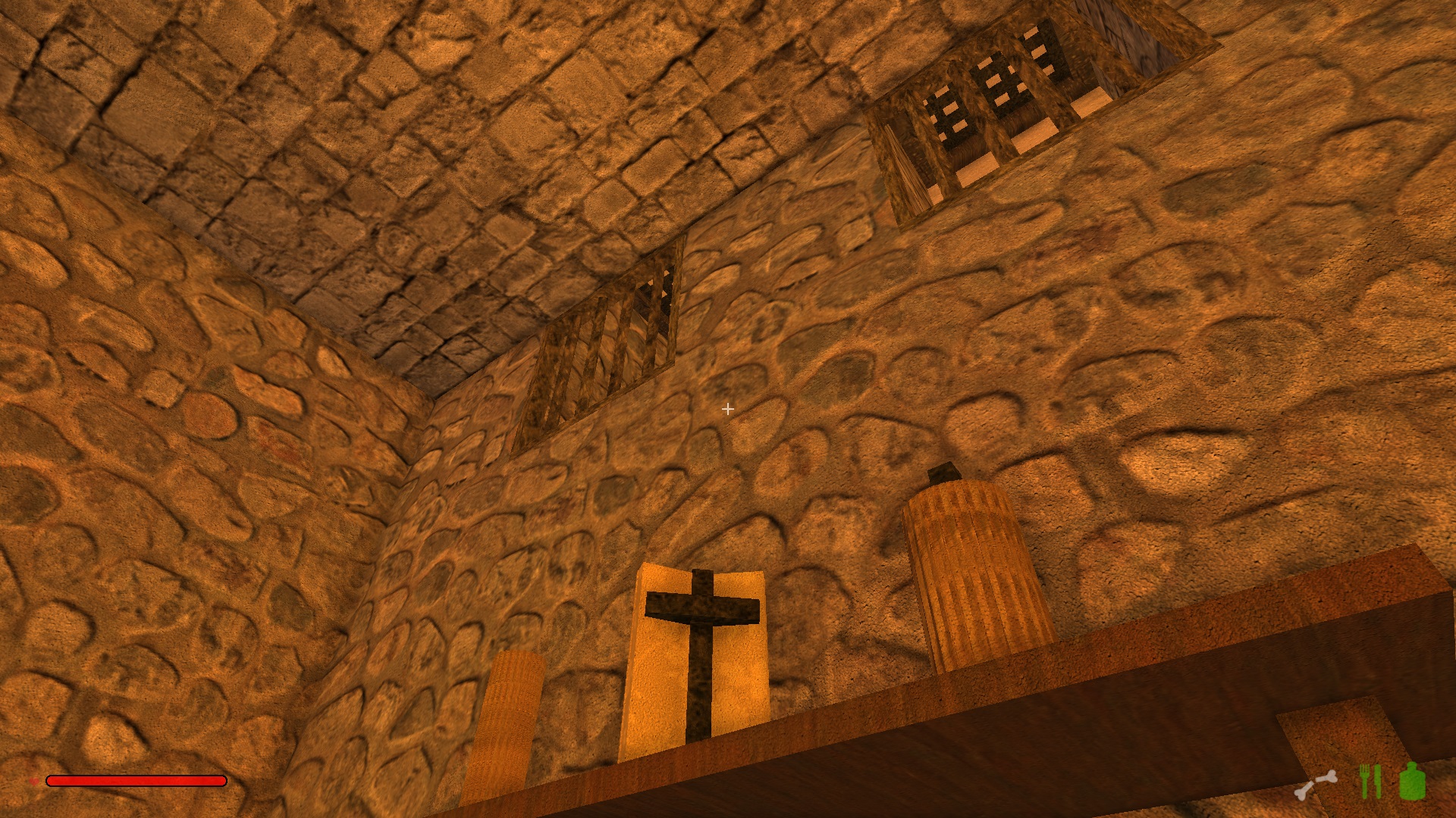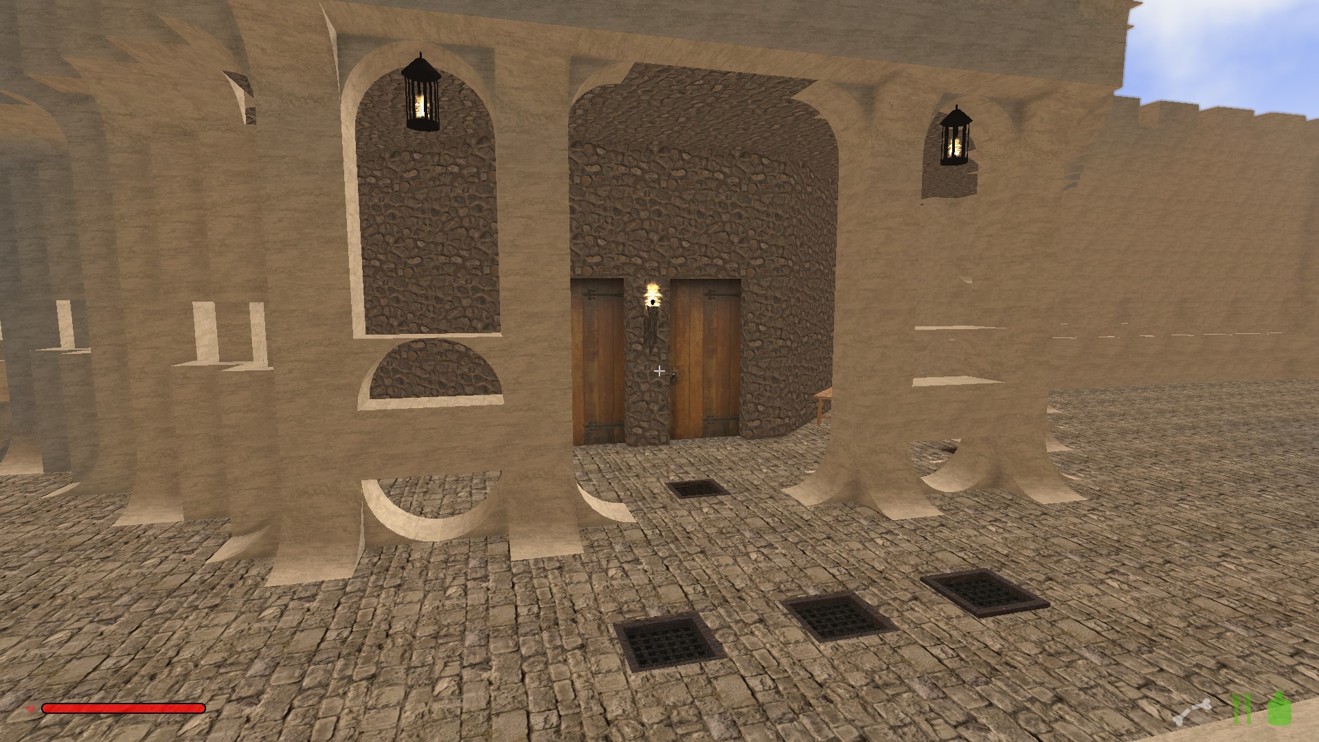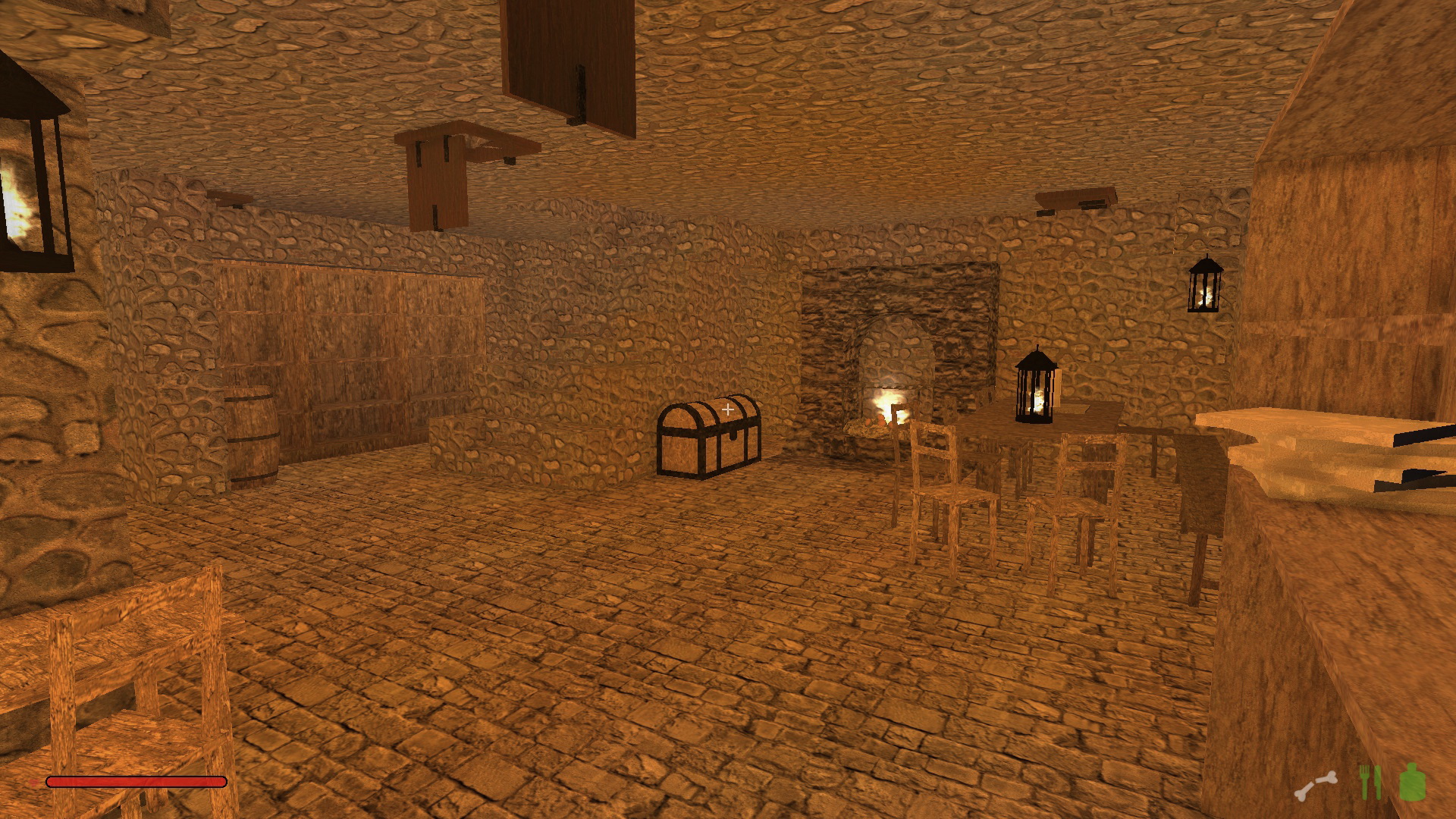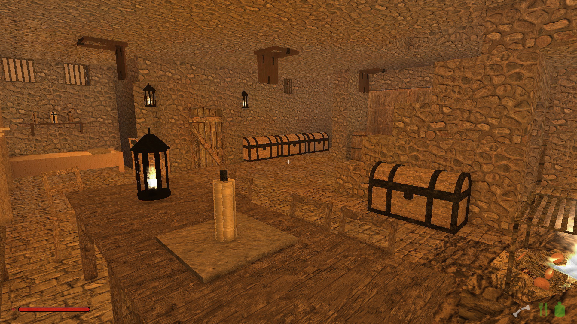 Stattdessen hab ich bissl an dem Mannschaftsquartier rumgebastelt, was einen direkten Zugang zum Verlies hat, aber auch einen zum Turm, quasi von zwei Seiten aus begehbar. Als Kind fand ich die Löcher im Boden bei Burgen immer faszinierend, von wo man von oben nach unten gucken konnte. Damals wusste ich noch nicht, dass die zur Belüftung da waren, weil man unter der Erde keine Fenster hast, aber die wollte ich auch unbedingt mit einbauen. An den Außenmauern gibt es Belüftungs-Lichtschächte und innen halt kleine eckige Luken, die bei schlechten Wetter aber auch verschlossen werden konnten, damit die armen Soldaten nicht nass wurden über Nacht.